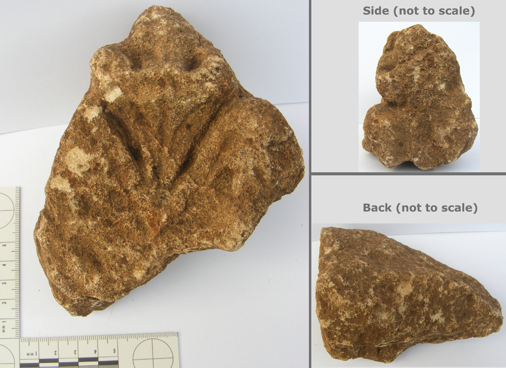 Carved from Bath Stone in the form of foliage, this leaf tip is almost certainly from a medieval church. It was found with a dozen other pieces of architectural stone including mullions and window surrounds. The blocks were used by a house-builder as hardcore in the 1950s and was probably rubble left over from the Bristol blitz.