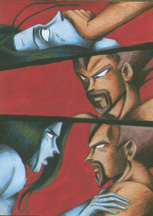 Quivering, he turned to take the king into his arms - to find himself eye to eye with Furiizaa. In his grotesque third form.